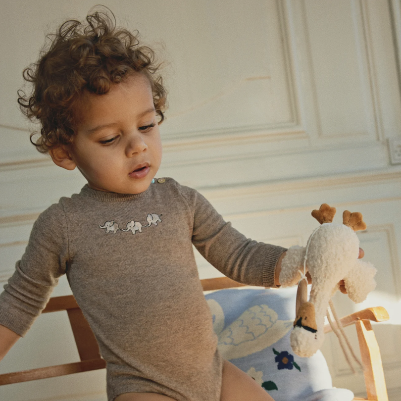 Knitted romper in a warm and soft blend.